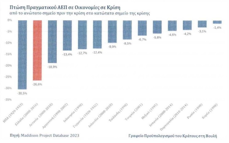 Συγκριτικά βέβαια με τις άλλες χώρες της ΕΕ, η κατάσταση μας έχει επιδεινωθεί σε μεγάλο βαθμό, αφού ενώ εμείς χάσαμε ΑΕΠ, αυτές δεν έμειναν στάσιμες – οπότε η απόσταση μας έχει διευρυνθεί.